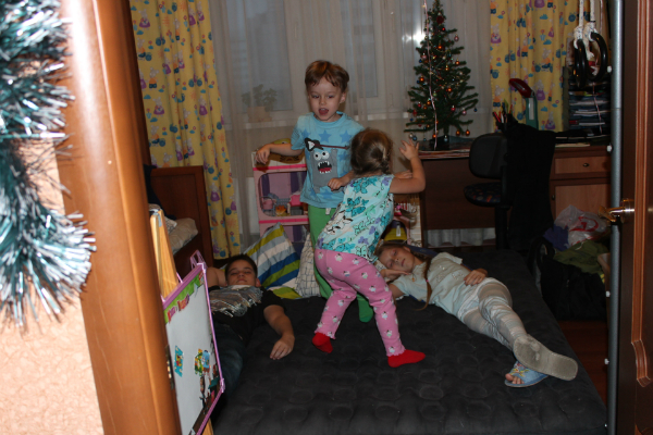 ну, несколько часов пролетело в разговорах, в походе на улиц, катании на горках у и пускании фейерверков!