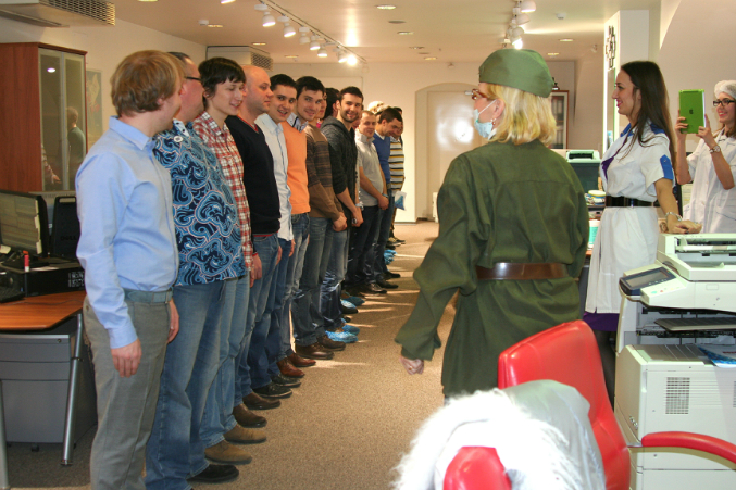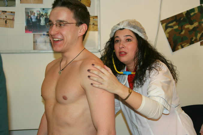 в общем, пройдя всех "врачей", ребята получали медицинскую карту и постановление "годен к работе в Боско".дальше мы поставили ребят в строй и озвучили им дружное хоровое поздравление