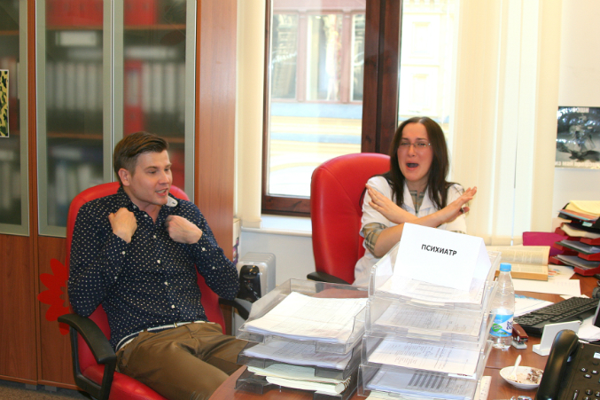 взяли напрокат халаты, стетоскопы, даже весы тяжелые из амбулатории приперли, таблички для проверки зрения, фонендоскопы, шапочки, перчатки, бахилы, самокат даже,