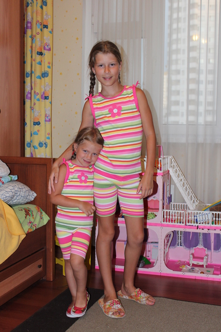 ага, после стильных шорт и топов конечно. но повторюсь - им это нра и мне нра. и если бы на мой размер было бы - я бы тоже себе купила! потому что нам нравится быть одинаковыми когда мы вместе! а в школу и сад они ходтя по отдельности, поэтому одежда другая.