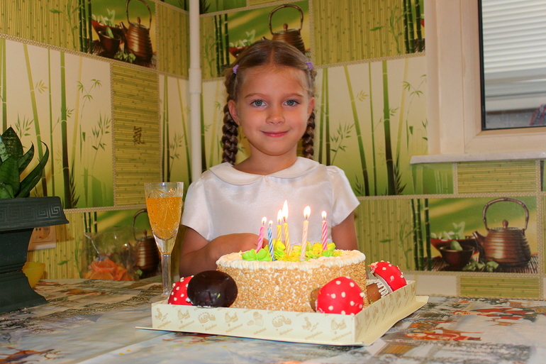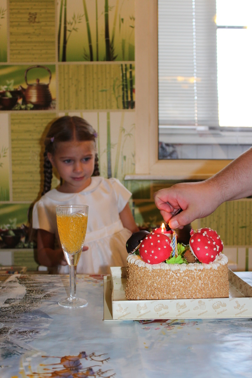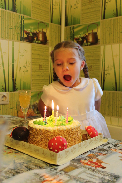 а торты в день рождения едят исключительно прЫнцессы и их приближенные. посему прЫнцесса возжелала платье носочки туфельки и в 8-30 утра мы уже ели деньрожденческий торт со свечками)) а почему собственно нет?))
