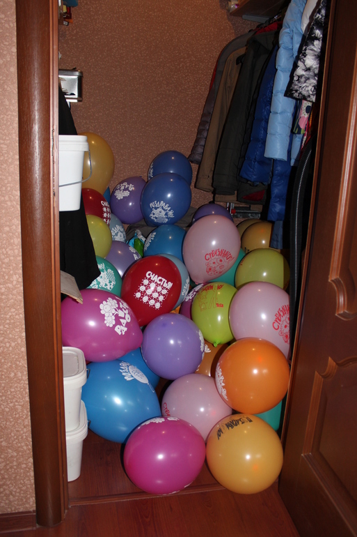 шарики надувались с позднего вечера в папиной комнате и там же лежали. недолго... ибо некоторые начали лопаться и папа наш сказал что он в таком безобразии спать не будет!