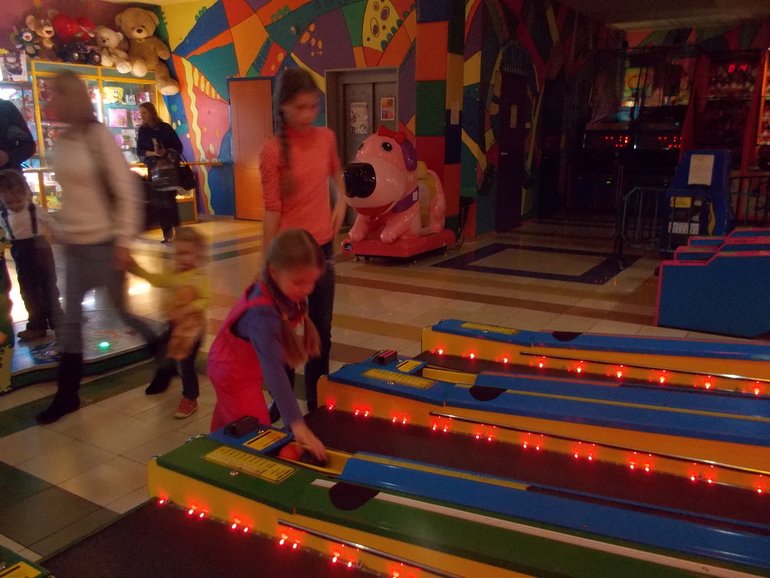 стали собираться, сушиться и вышли наружу... к атракционам! при виде которых ребеночек взбодрился и бодро потрусил к кассе с папой и сестрой. я тихо прижалась к диванчику и слилась с сумками)