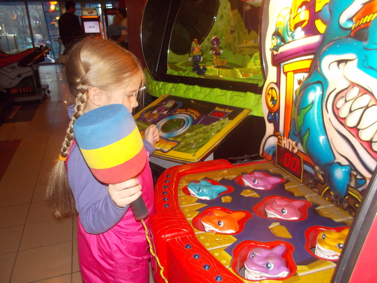 начался от еще в субботу, когда мои родители повезли дочек в Вегас на атракционы, в Детский мир за подарком и в объедаловку)