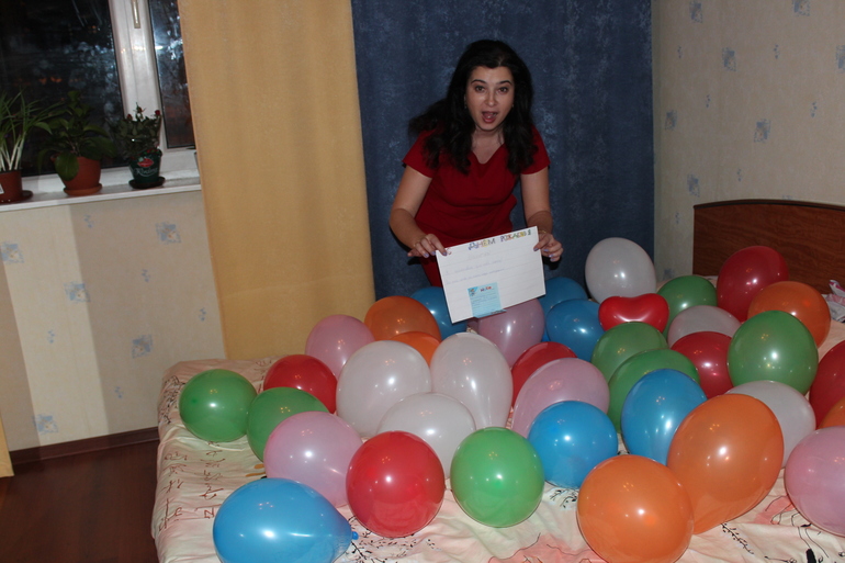 Катюша (разное)дочь на мой день рождения надула 40 шариков втайне от меня и устроила мне квест по квартире. сама ведь придумала! я такое не практиковала, всё собиралась но недосуг было. а так меня доченька погоняла по квартире изрядно и в итоге подарила маленькое чудо. для меня, безрукой, это большое чудо! я такое ровное плетение из бисера детскими руками не видела может ей пора открывать мастерскую?))))