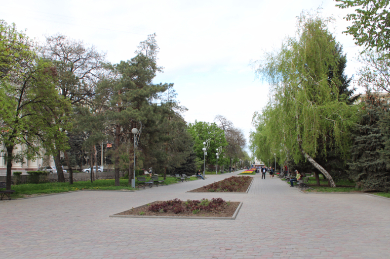 перешли проспект Ленина, ко второй части аллеи Славы.