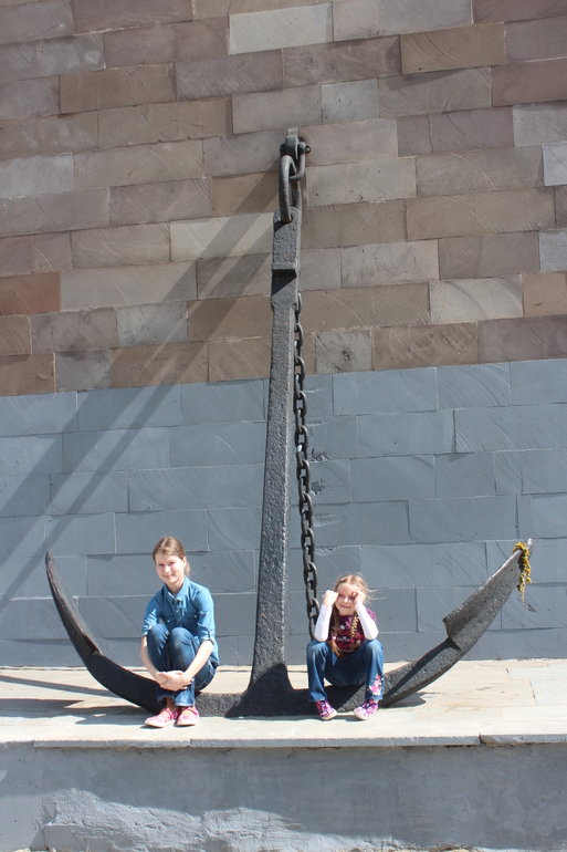 на палубе было ветрено и я нашла детям идеальное место -на носу корабля ))