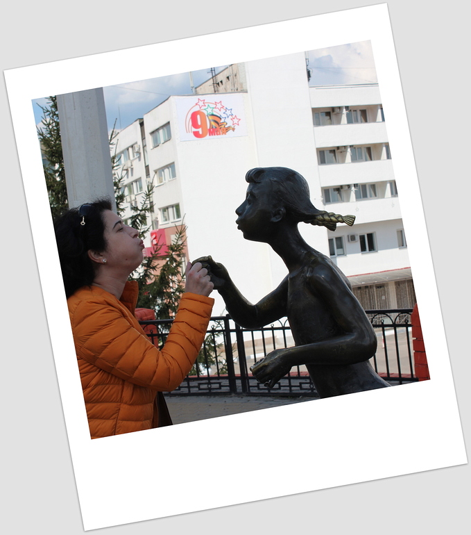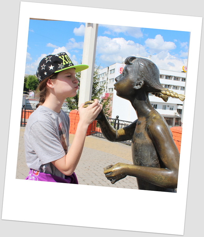 дальше мы нашли веселенький памятник девочке выдувающей воздушные шары) трубочку у нее в очередной раз выломали, но это не помешало нам порезвиться)