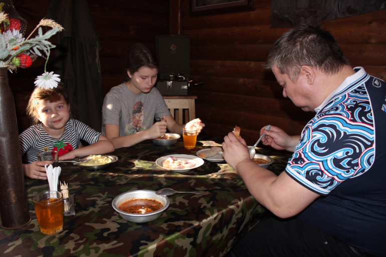 единственное что понравилось -кафе Блиндаж. время было около 18 часов, мы с удовольствием покушали фронтовые пайки из алюминевых мисок алюминеными ложками. 100 грамм не брали)) молодцы те, кто держит кафе!