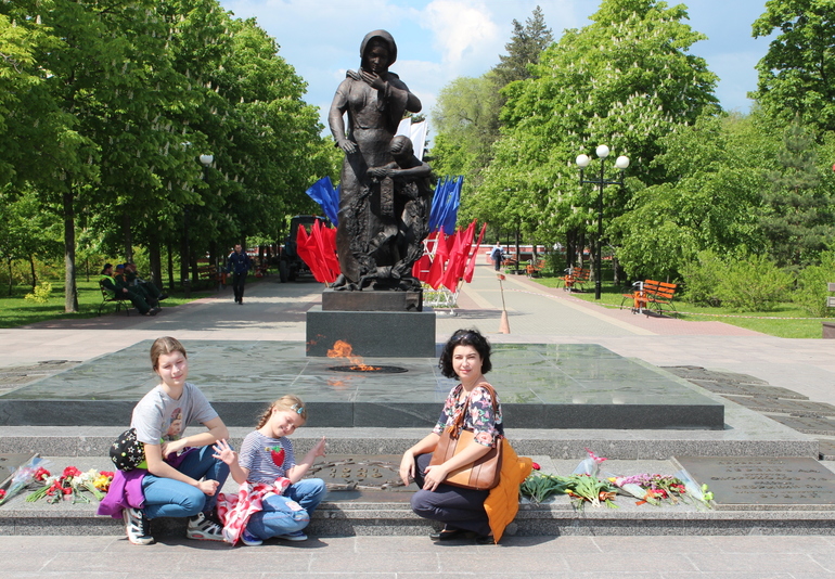 склонили голову у памятника посвященного войнам.. не нашим, не так давно прошедшим..