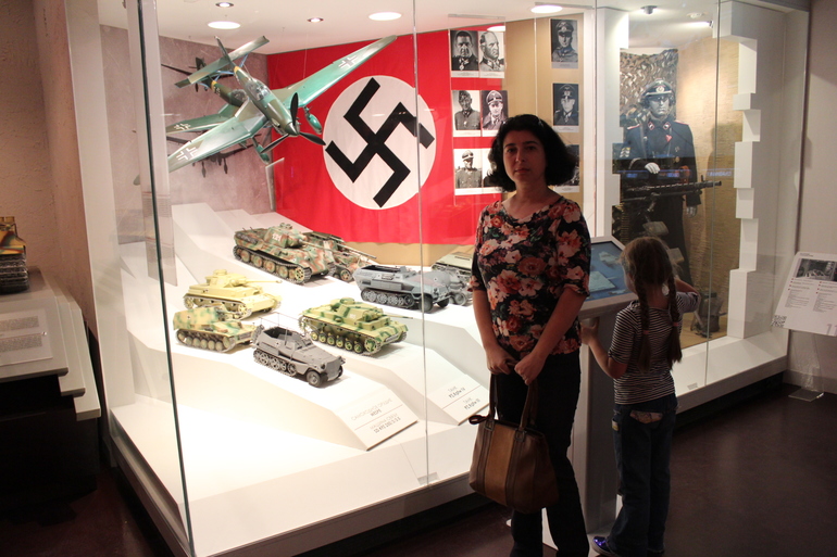 очень хорошо сделаны экспозиции -у каждой электронная стойка и можно прочесть о каждой вещи отдельно включая ее историю! сверху над тобой самолеты и муляжи и останки настоящих! смотрители постоянно включают и они двигаются, раздается гул и прочие эффекты.
