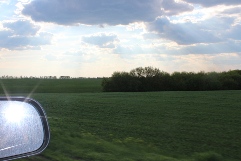 поля, поля.. едешь а кругом поля.. те, на которых происходила великая битва. обагренные кровью, смешанные с металлом, с ненавистью, с болью.. с жизнью..