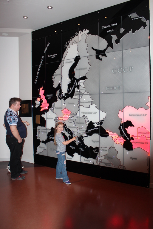 итак, сам музей. Настёночка от карты в восторге! да и муж с Катей тоже) сам нажимаешь кнопки -какой период ВОВ тебя интересует.