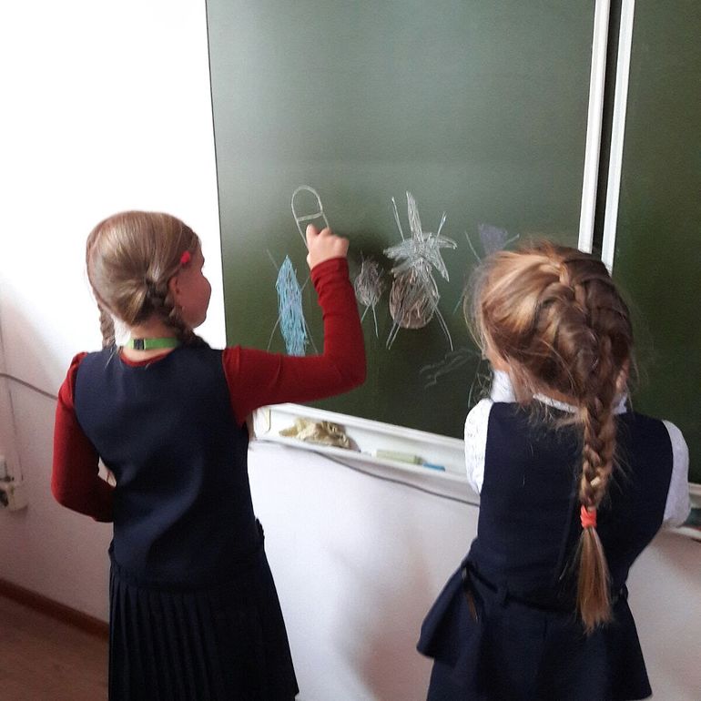 Настя и школаКатюша дежурная на этой неделе. забежала к Насте на переменке, сфотографировала наскальную живопись)