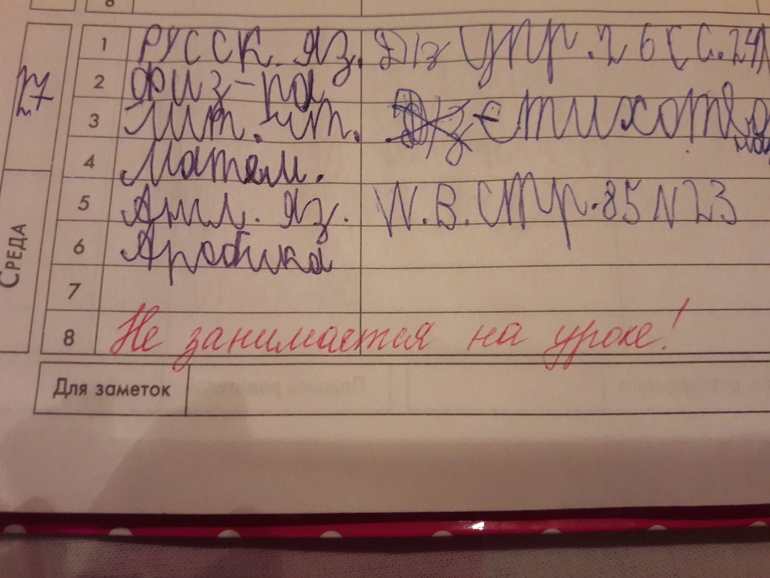 Дневник - отдельная песня. На грязь я уже не смотрю, постепенно что можем поправим. Но, млин, ни дня без замечаний!!!
