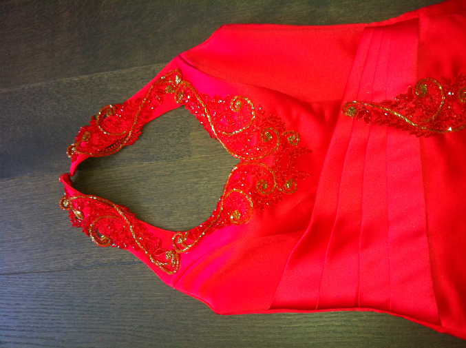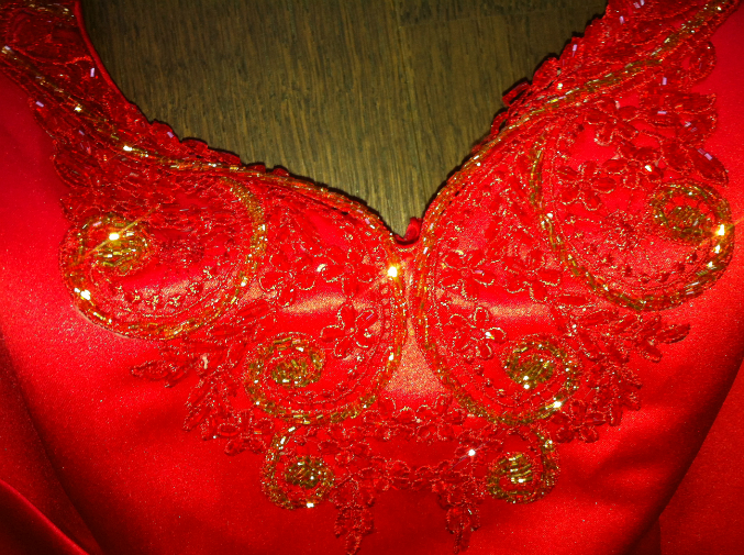 Продам эффектное красивое платье .Покупала для свидетельницы на свадьбу. Одела один раз. Платье после химчистки(никаких пятен нет)!!!!! Размер 46. Сзади молния и шнуровка до пояса,за счет чего отлично садится по фигуре. Спереди на поясе драпировка-убирает несовершенства фигуры. Внизу пикантный но не вызывающий разрез. Платье украшено кружевом с вышивкой бисером(красный и золотой). Дополнительно отдам шифоновый шарфик на плечи в тон платью.