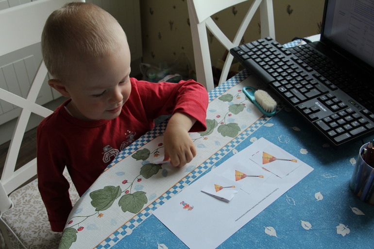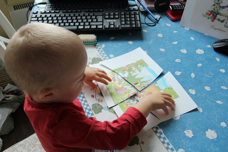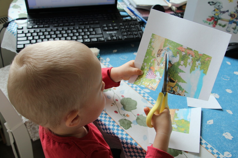 Дальше Саша потребовал самостоятельно разрезать и собрать картинку.
