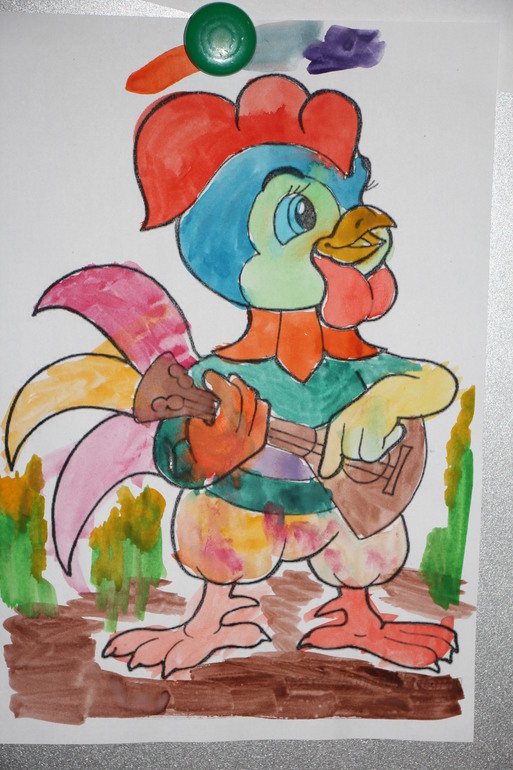 На следующий день расписную нашу балалайку мы за ламинировали и натянули струны.
