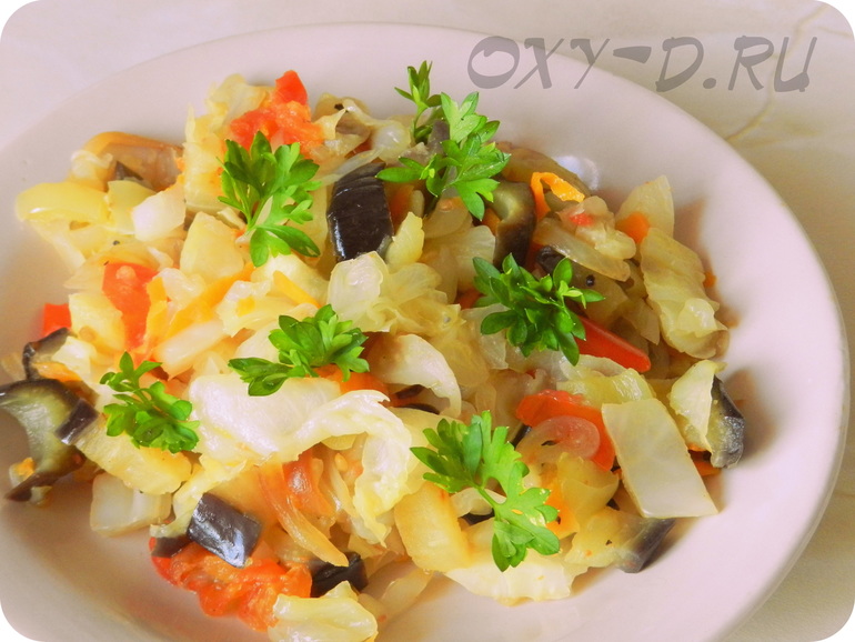 У меня сейчас в меню в основном легкие, диетические блюда. Но так как лето выдалось не особенно жарким, то хочется чего-нибудь горяченького на ужин. Очень выручают тушеные овощи. Готовлю их в мультиварке Vitesse в режиме быстрое тушение. Сегодня вот принесла вам тушеную капусту с баклажанами.