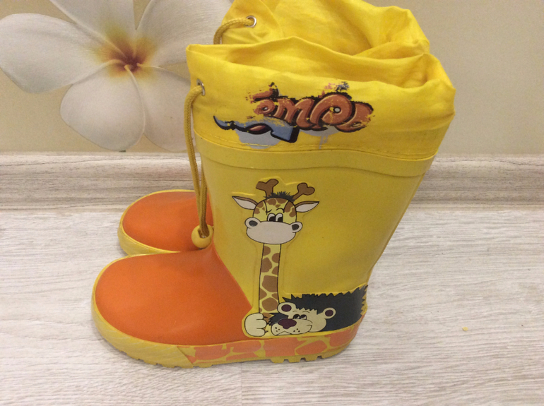 5. Яркие резиновые сапоги новые, р-р 31 (нам очень широки) на хлопке, без утеплителя. 550 руб.