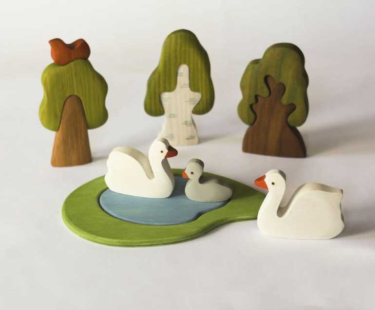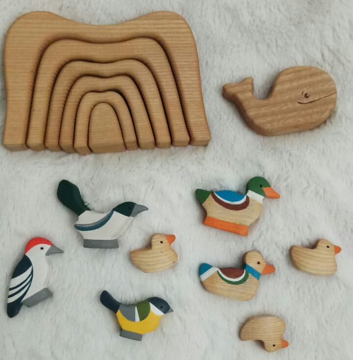 Мастерская семья Михеевых, это супружеская пара Владимир и Алена, они не так давно появились на рынке деревянных игрушек, в отличии например, от Сказок леса, но у них явно присутствует свой стиль, и в тоже время они так же придерживаются Вальдорфской системы в изготовлении игрушек.Игрушки семьи Михеевых естественны и натуралистичны. Свои изделия они покрывают нетоксичными красками мягких тонов и льняным маслом. В итоге получаются игрушки спокойных цветов, передающие текстуру и узоры древесины. Они отлично помогут воспитать ребенка в гармонии с окружающим миром и научат видеть природную красоту, и благотворно влияют на фантазию. Кстати, именно Михаил Машинец, основатель Сказок дерева, вдохновил их на создания собственного дела)