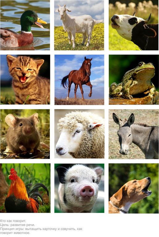 Ничего особенного. Изображения животных. Нужно озвучить, кто как говорит. Можно использовать для звукового лото.
