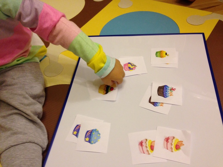 А вот задачка дать кому два, кому три кексика не получилась( один кекс Поля быстро нашла и отдала мишке, а дальше не могла точно определить два и три - иногда делала правильно, иногда ошибалась, то есть видимо выбирала случайным образом. Значит, следующими будут занятия математикой))