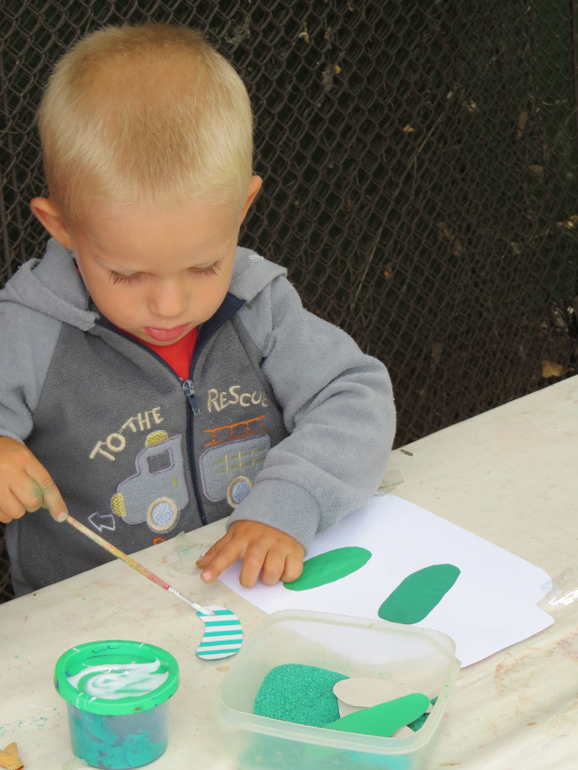 Еще мы "солили" огурцы. Сначала Тимоша работал кисточкой, а потом в ход пошли пальчики и вся ладошка))