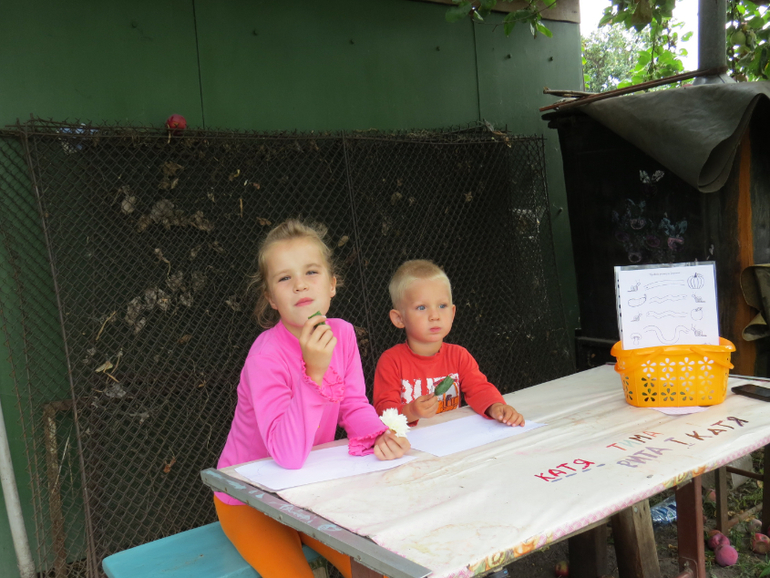 Наши занятияКак быстро пролетело лето, скоро осень...сегодня, как никогда отчетливо мы это осознали. С огорода уже убрали картошку, закончилась пора огурцов и гороха, поспела кукуруза и подсолнухи... на улице ледяной ветер, весь день не было солнца и небо такое осеннее, угрюмое и "тяжелое".