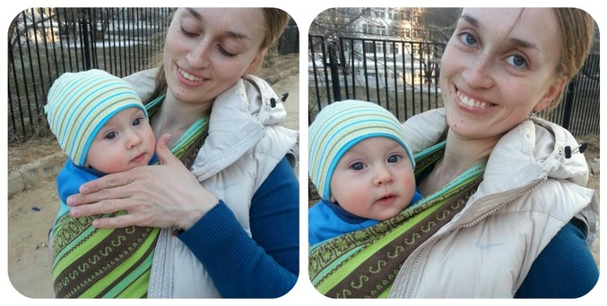 А третья прогулка вообще удалась на славу. Направились в дальний ТЦ, в детский супермаркет, за обувкой для Ярика. Папочка прагматично советовал надеть рюкзачок, который можно и на него, если что, привесить, но я уперлась своим девчачьим рогом: хочу выгулять красивую тряпочку, и все тут)) Примотала свой бесподобный шарфик и часа два с небольшим мы с Гермашкой обнимались)) На автобусе покатались. Поспать успели. И в магазин удачно сходили. Красота идиллическая!)
