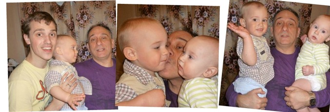 Вчера совершенно не успела написать – отпустили мы нашего папу в театр с тещей, смахнув слезу умиления))) Да и грех не отпустить – занят-то в спектакле был мой свекр, на гастроли в Москву приехал наш заслуженный артистичный дедуля. И конечно же, по приезде сразу заглянул к нам – проведать первого и третьего внуков)) Внуки удивились, но вскоре заулыбались - в 17 и 2 зуба соответственно))
