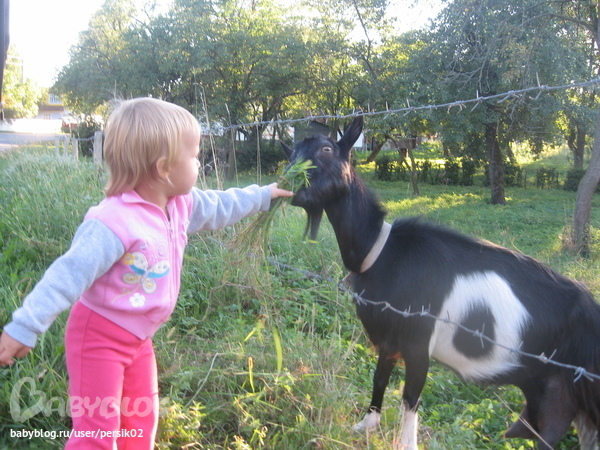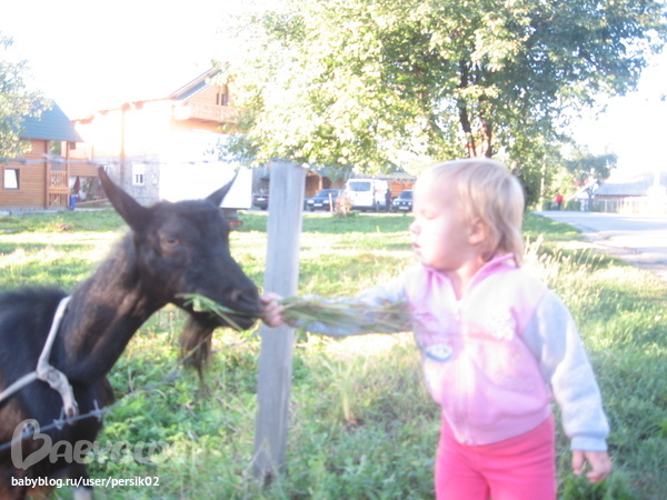 Аминке очень понравилось "тамошнее" раздолье : утром дверь открыл и ты уже на улице - гуляй бегай сколько душ угодно)))) На лашадок смотрела, козочек кормила