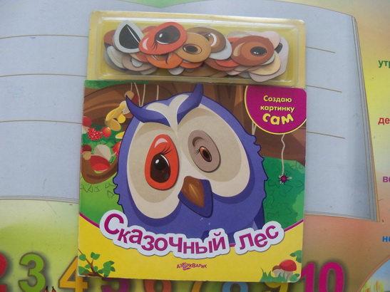 Я предполагала, что дочке будет интересно (игра у нас давно, но раньше Ксюша не очень интересовалась ей), однако и сейчас особого энтузиазма я не увидела. Терпения хватило только на 4 картинки, причем дочка брала почти первое, что под руку попадет, подумать не хотела. Я хотела книгу убрать, но Ксеня все же не дала и создала таких вот "монстриков" (не хотела бы я встретить таких животных - сова грустная-грустная, с чужими-то глазами; белка мухоморов наверное наелась, енот вообще как после пластической операции, один заяц только более-менее адекватен).