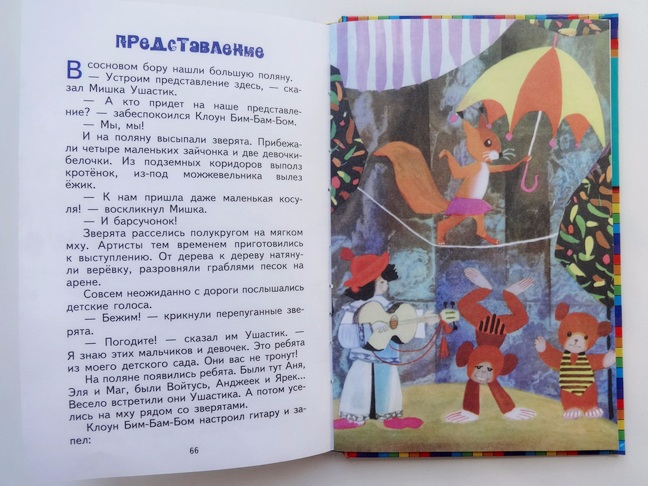 Сборник коротких рассказов Осеевой "Волшебное слово". Рассказы, на мой взгляд, замечательные, но в нашем случае их нужно отложить на пару-тройку лет - на младший школьный возраст. Прочли несколько рассказов, дочка слушала, рассматривала картинки, но не поняла всего смысла, не поняла юмора. Например, в рассказе "Навестила" Ксюша не поняла, что девочка пришла к больной подруге, но ничем ей не помогла, хотя в тексте явно видно, какая помощь требовалась. Мало еще такого опыта. Поэтому я выбрала, что попроще понять, немного почитали и отложили. В целом сборник мне понравился, жаль - уже нет в продаже, можно было бы купить года через два.