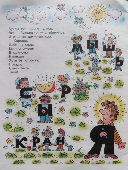 "Буква Я" Заходера (которую я уже упоминала) впервые предстала перед нами в таком виде. Картинки не шедевры, но в процессе перечитывания стихотворения мы к ним привыкли, и буквы в новой книге потом показались нам какими-то "обезличенными".
