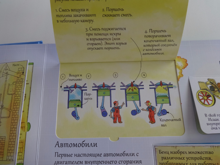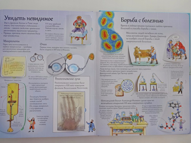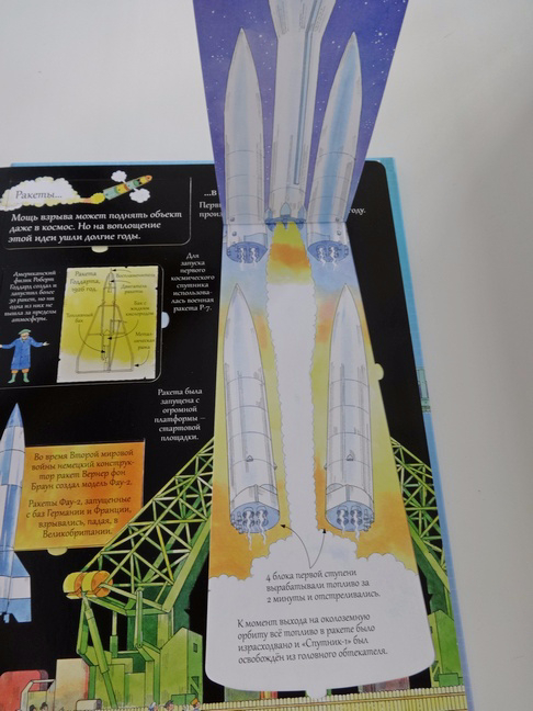 Я люблю книги этой серии, правда, у меня их немного. У дочки любимая - Открой тайны науки. Полистали изобретения - тоже интересно, но рассчитана на более старший возраст (рассказывается про двигатели, летательные аппараты, фотоаппараты, электричество, линзы, рентген, открытия в области медицины, космос и др.) или на более любопытных детей. Ксюше, конечно, же было интересно открывать все окошки, заглядывать во все "секретики", но читать я не стала, кое-что объяснила своими словами (про космос, например, подробнее посмотрели), но далеко не все. Я взяла книгу в библиотеке посмотреть (так как хотела купить, а в магазинах у нас такое не продают), в итоге решила не покупать - сейчас рано, а потом вместо этих "окошек" возможно куплю энциклопедию. Но если вашему ребенку по возрасту - присмотритесь.