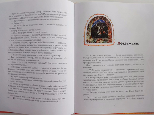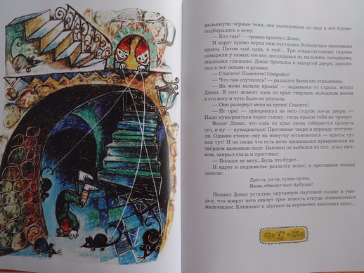 Сказка о том, как мальчик Динас, который любил приврать, попал в замок лгунов, где все было не по-настоящему, и откуда вруну никак невозможно выбраться. В конце мальчик перевоспитывается, перестает врать, сказка заканчивается хорошо (думаю, многим знакома по старому мультфильму). Ксюша слушала, за героя переживала, но не скажу, что осталась в восторге - я не смогла ее уговорить прочитать второй раз. И я могу сказать почему - мало картинок. Да, ей все еще нужно, чтобы на каждой странице была картинка, а здесь либо картинка на разворот (без текста), либо какой-то огрызочек в уголке. Честно говоря, мне из-за того же самого не понравилось это издание. Сами иллюстрации симпатичные, но я не люблю, когда разворот без текста, приходится прерывать чтение и молча сидеть и смотреть на то, о чем уже прочли (или еще не прочли). Самое обидное, что такой разворот разрывает предложение (а иногда даже одно слово), читать очень неудобно. Разворотов, на которых есть и текст и картинка, всего 2 или 3. В общем, прочли и больше не вспоминаем. А жаль, сказка-то хорошая.