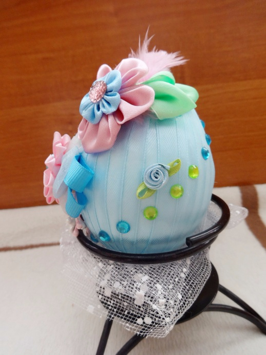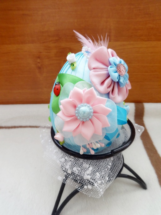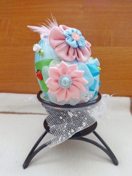 Накануне Пасхи получилось у меня такое рукодельное яйцо (воспитатели в садике попросили на выставку). Уже отдала, сохраню на память фото.