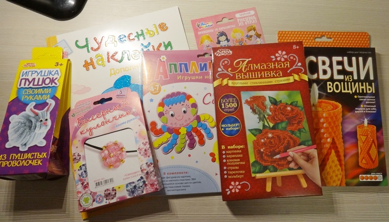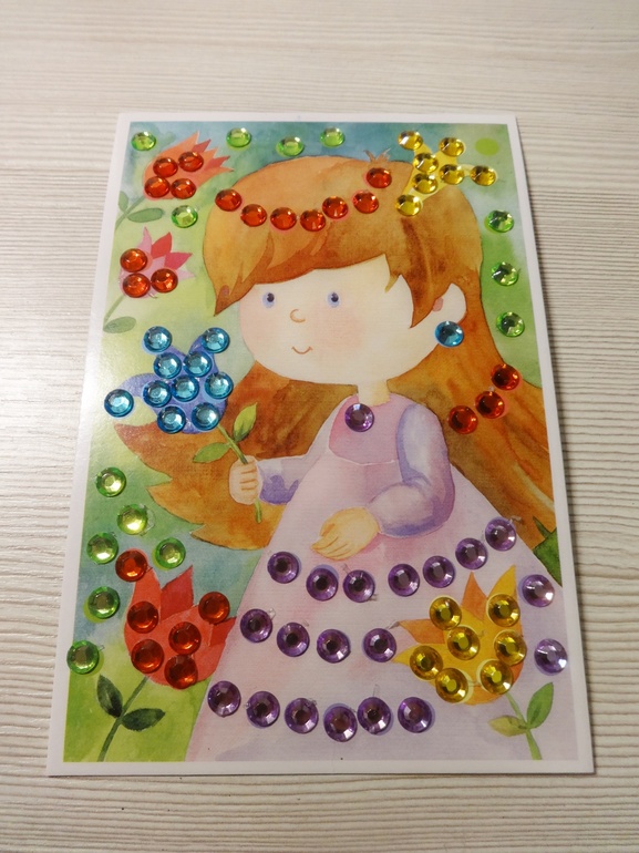 На алмазную мозаику уговорил продавец. Такие наборы я видела давно, но большие и дорогие. И сомневаюсь, что Ксюша справилась бы с большим полотном. Это маленькое и недорогое. Посмотрим, что получится.