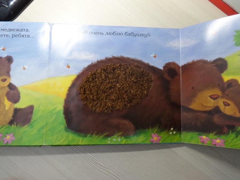 Книжка с тактильными вставками. Слушать там нечего, но Костик требует открывать и обязательно проведет рукой по каждой картинке.