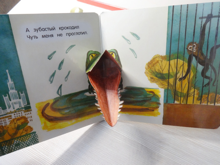 С этой книгой вообще отдельная история. Одно время Костик носил читать только ее, при этом старался побыстрее открыть последнюю страницу с крокодилом. Но! Этого крокодила он боялся, сразу от книги отходил. А стоило только закрыть книгу, снова требовал крокодила (если я подносила его поближе и открывала пасть, то вообще убегал). Такая вот любовь, смешанная со страхом. Сейчас уже не боится даже пальцы в пасть засунуть. 😁