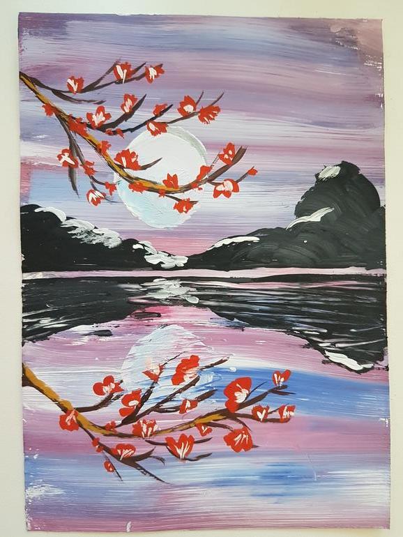 Выше на фото моя первая картина. Ее я считаю самой удачной из всех моих работ марафона, хотя даже сама могу ко многому придраться. Рисовать я по-прежнему не умею, но все-таки получила представление о некоторых приемах (создание фона, дальний, ближний план и др.) и техниках. За что организаторам марафона большое спасибо.