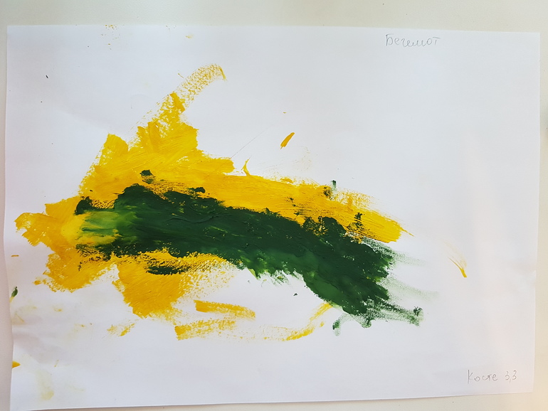 А сын вместе с нами нарисовал бегемотика, его не смущает размазывание красок ))
