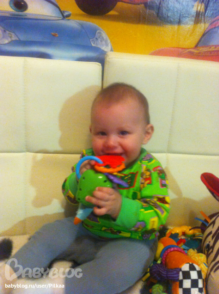 А еще мы любим с носками играться,и все что звенит,шуршит и т.п.)))