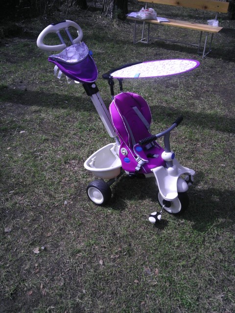 Впечатления не очень. Какой-то он весь пластиковый. Корзина гремит при езде. Сиденье крошечное, мы еле влезли, даже бампер не стали крепить, иначе места вообще не будет. Ноги до педалей не достают, на подножку не умещаются, болтаются в воздухе. На мой взгляд, Лексусы основательней и больше, в них даже трёхлеток катают, а в Смарт вот годоваса еле посадили((