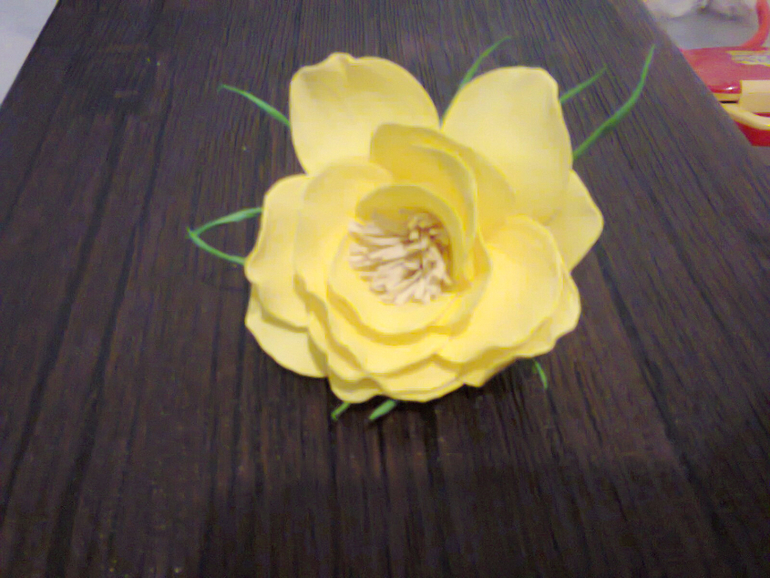 Корявенько, но ребенок в восторге! Тут же его отобрала. Вчера я приделала к этой розочке стебель, т.к. Василю понадобилось чтобы это стало волшебной палочкой :)) Она так забавно "колдует": говорит что-то вроде *******- БУМ! что до бум я никак не могу разобрать, какое-то каля-маля :))))) Это как фантазийные имена типа "фатя забатя" :))) Это у нее последнюю неделю пошло.