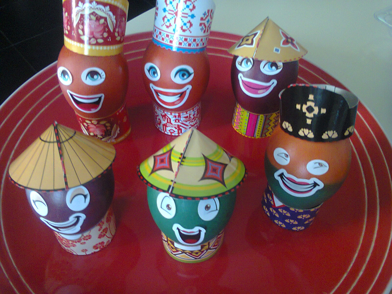 А мы с Василюшкой вот как понакрасили :))) куриные и перепелиные. В этом году у нас красочно и даже интернационально