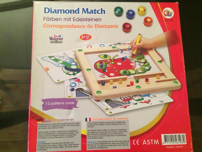 Нужно палочкой с магнитиком распределить по цветам алмазики) карточек много с заданиями. Отличная подготовка руки к письму+цвета и счет) ребенку 5 до сих пор если показать играет и показывает младшему. в идеале) Да и сложно навредить игре)