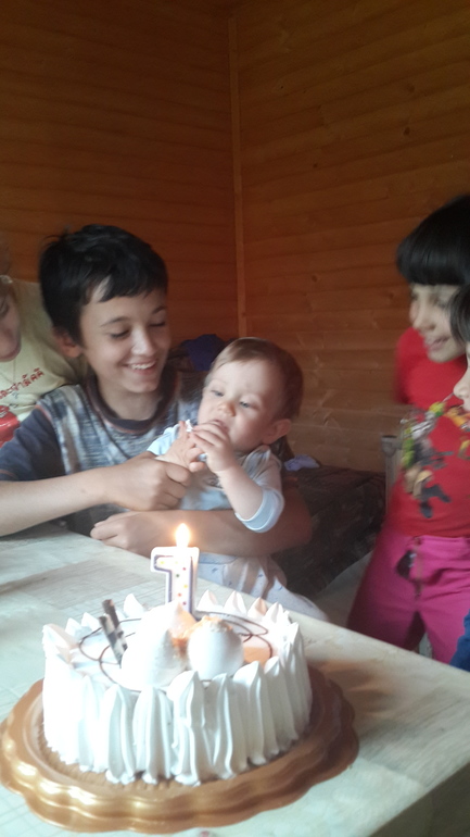 16.07. Грише исполнился годик. Днюху отметили более чем скромно: папа был на работе и ночевал в Москве, погода не радовала, в общем, задули свечку и скушали тортик.