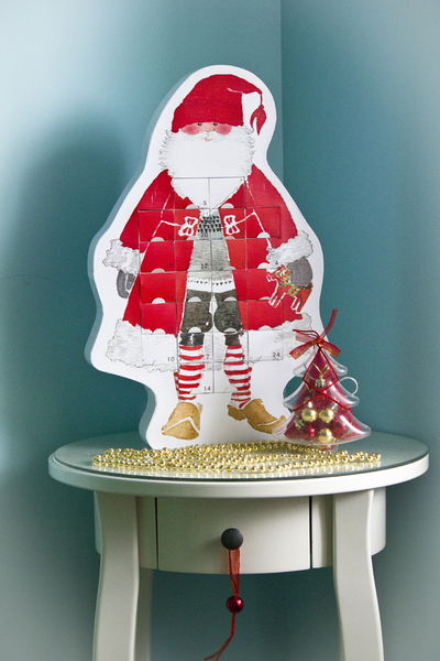 Я опять (второй год!!!) не успела дошить адвент-календарь для Плюши... Решили купить такого Санта-Клауса Деда Мороза, уже готового. Я его давно у нашего папы выпрашивала. А что, мне нравится. С утра положила ей в седьмое число шоколадного морского конька, и ирисок. Как же она радовалась! Дите-дитем, верит, что дедушка их ночью подложил. Вообщем, пошел у нас календарь на "ура". Планирую теперь туда подкладывать разные мелкие подарочки+конфеты. Ящички маленькие, поэтому добавляю по несколько раз в день. Запрет на конфеты снят на этот месяц. Определили дедушку на мой туалетный столик. Ждем Нового Года!